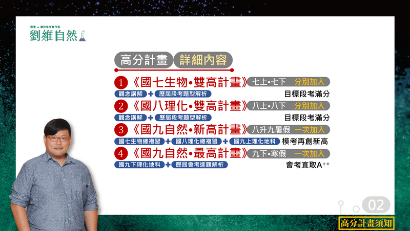 擅長在短時間之內幫孩子的自然科迅速提升。因為擔任過康軒、翰林的參考書作者,以及在學校第一線的教學現場,那些單元容易出、出題比重、大考猜題都是我的強項。